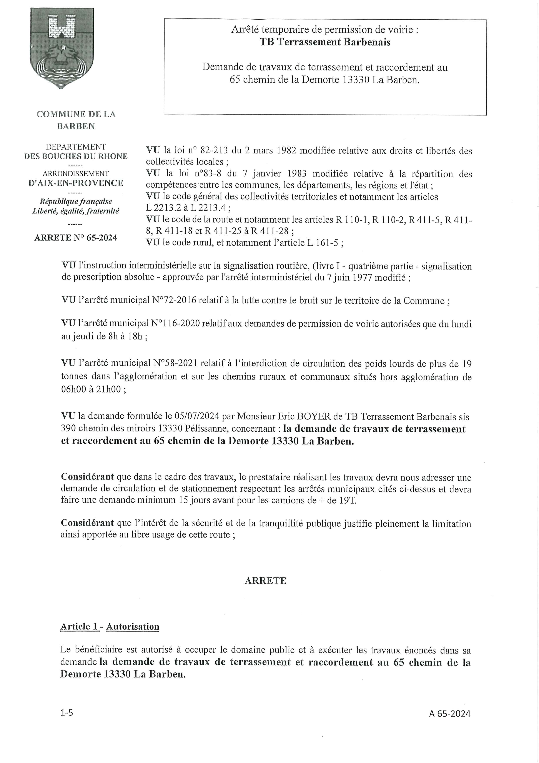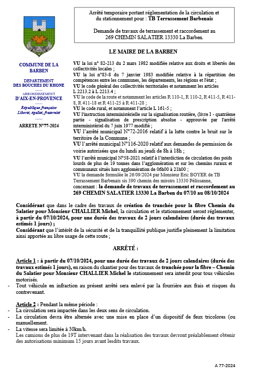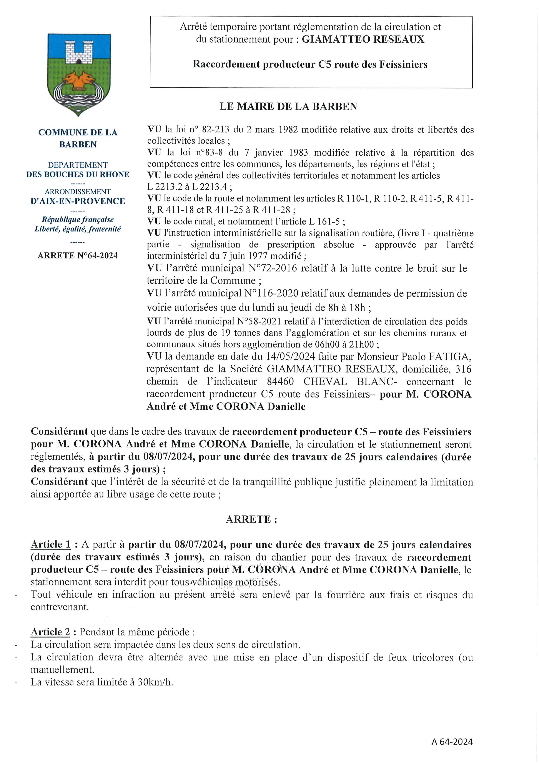 01-2025 ARRETE TEMPORAIRE DE VOIERIE VRD PROVENCE