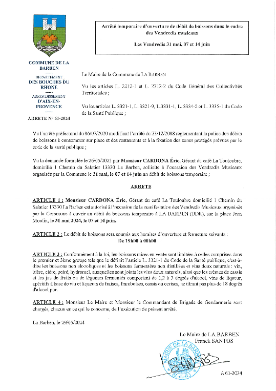 48-2025 ARRETE temporaire debit boissons – VENDREDIS MUSICAUXet fetes de la musique 2025LA TOULOUBRE